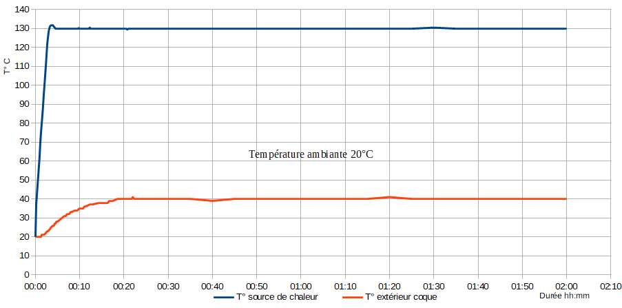 Test réalisé à température ambiante de 20°C.